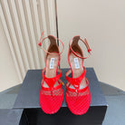 Alaia Fishnet Thong Heels Sandals Red Lambskin 299660