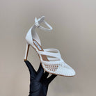Alaia Fishnet Thong Heels Sandals White Lambskin 299659