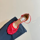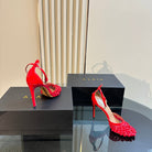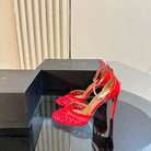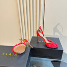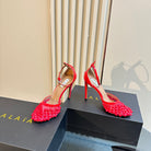 ALAIA HIGH FISHNET PUMPS WITH STUDS IN CHERRY RED LYCRA MESH AND LAMBSKIN