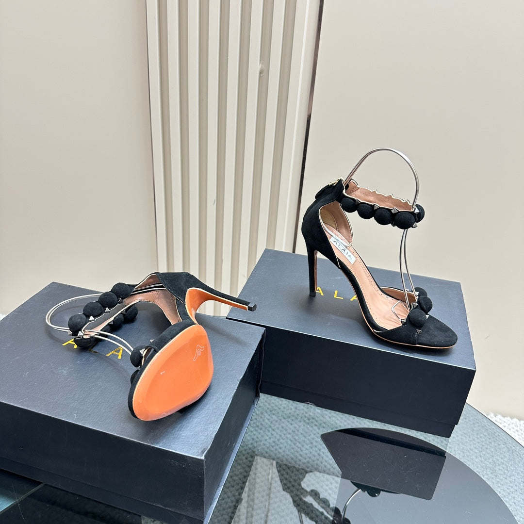 ALAIA HIGH HEEL SANDAL 10 CM IN BLACK SUEDE