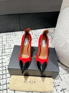 ALAIA HIGH PUMPS 10CM IN CHERRY RED SUEDE MIX BLACK CALFSKIN