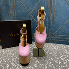 ALAIA WEDGE PUMP 15 CM IN NEON PINK LAMBSKIN AND BEIGE RUBBER