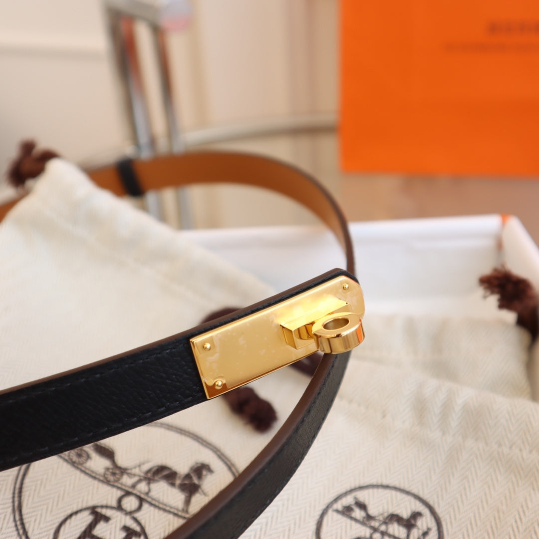 hm kelly belt 18mm with pocket gold calfskin gold buckle