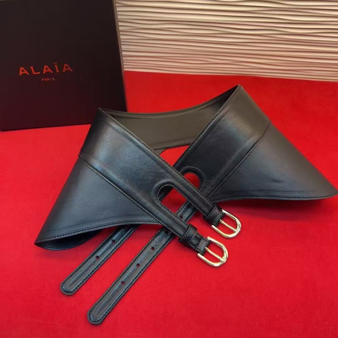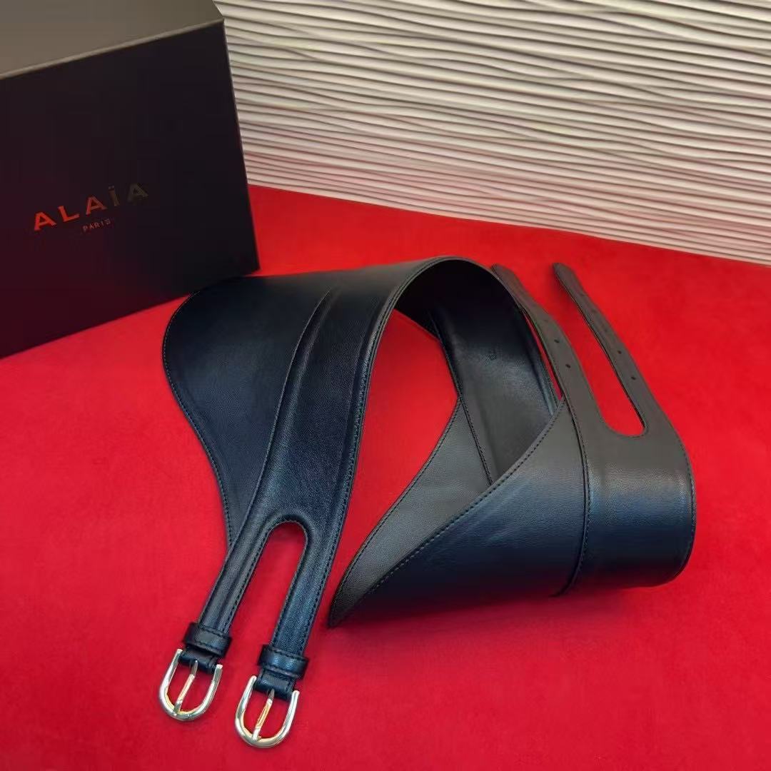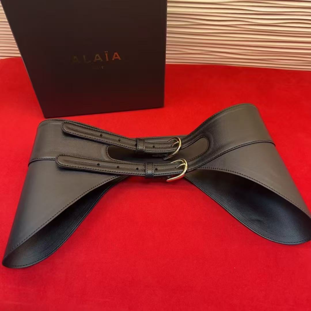 Alaia Belt Black Lamskin With Two Buckles Metal HW
