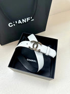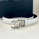CC 30MM BELT IN WHITE AND BLACK CALFSKIN WITH SILVER HARDWARE