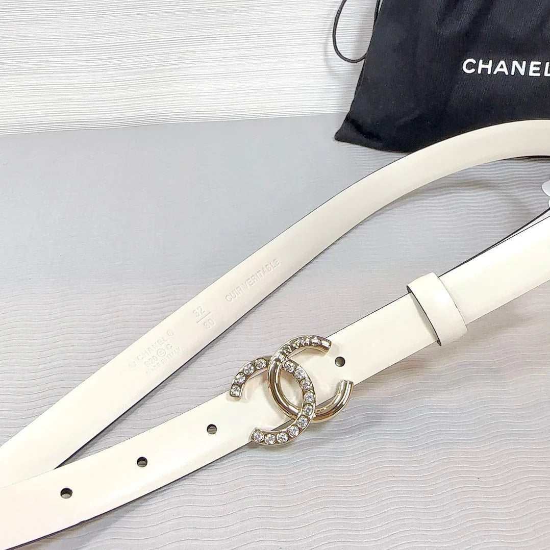 CC BELT 20 MM IN BEIGE CREAM SMOOTH CALFSKIN GOLD HARDWARE ATTACH RHINSTONE