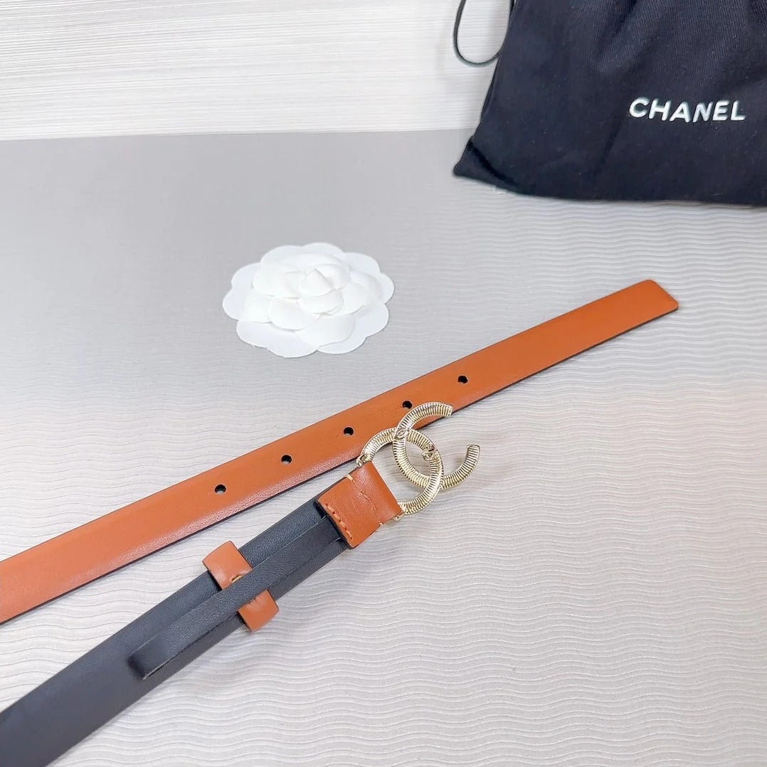 CC BELT 20 MM IN BRONZE BROWN SMOOTH CALFSKIN GOLD HARDWARE ATTACH RHINSTONE