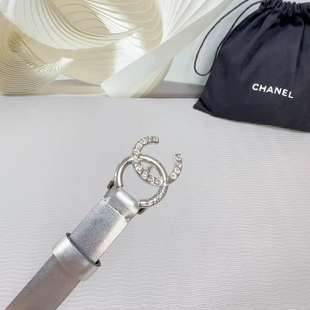 CC BELT 20 MM IN SILVER SMOOTH CALFSKIN SILVER HARDWARE ATTACH RHINSTONE
