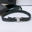 CC ELASTIC BELT 30MM IN BLACK CALFSKIN SILVER HARDWARE WITH RHINSTONES