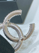 CC ELASTIC BELT 30MM IN BLACK WOOL FABRIC SILVER HARDWARE WITH RHINSTONES