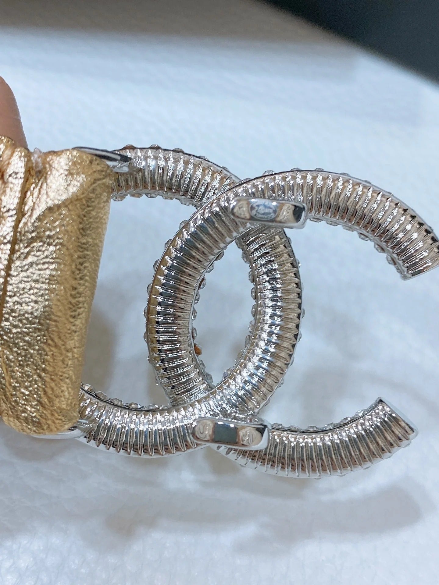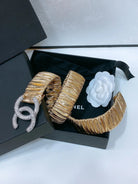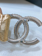 CC ELASTIC BELT 30MM IN GOLD CALFSKIN SILVER HARDWARE WITH RHINSTONES