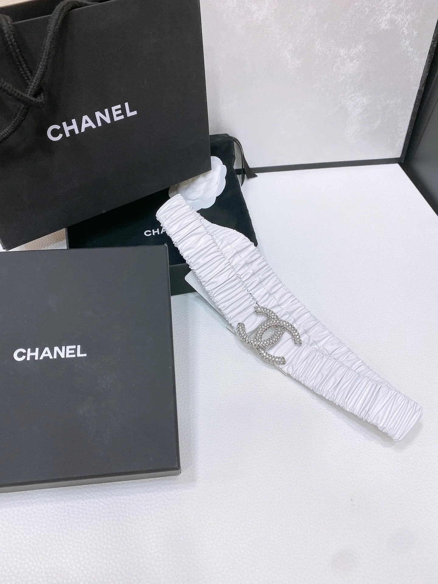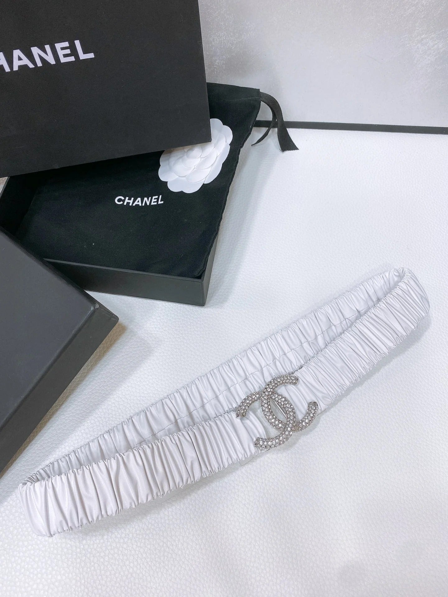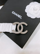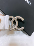 CC ELASTIC BELT 30MM IN WHITE CALFSKIN SILVER HARDWARE WITH RHINSTONES