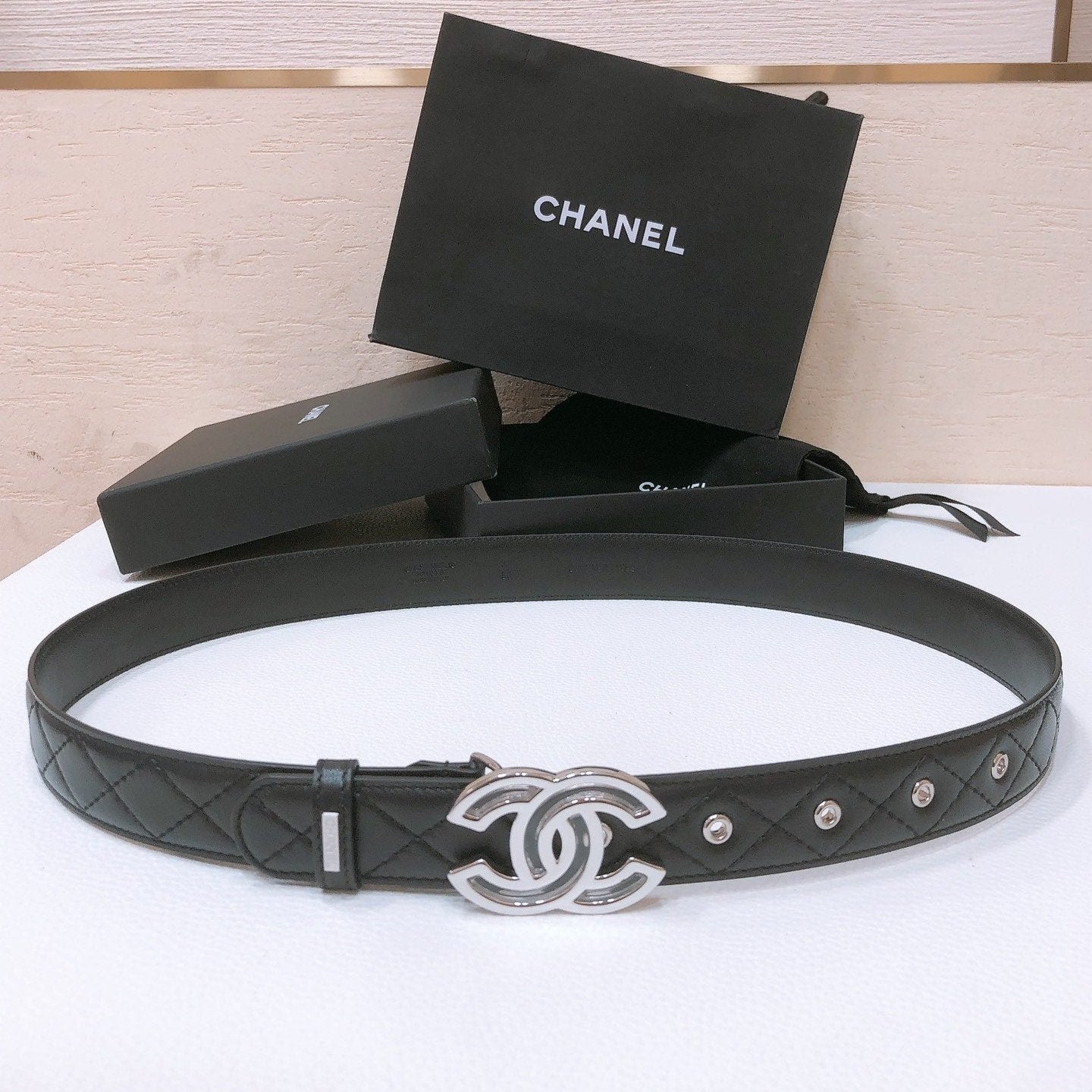 CHANEL BELT 3CM IN BLACK EMBROIDERED LAMBSKIN SILVER HARDWARE