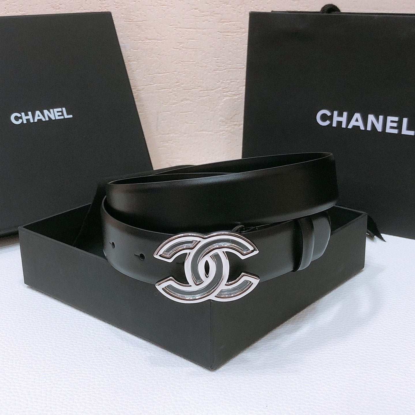 CHANEL BELT 3CM IN BLACK LAMBSKIN SILVER HARDWARE