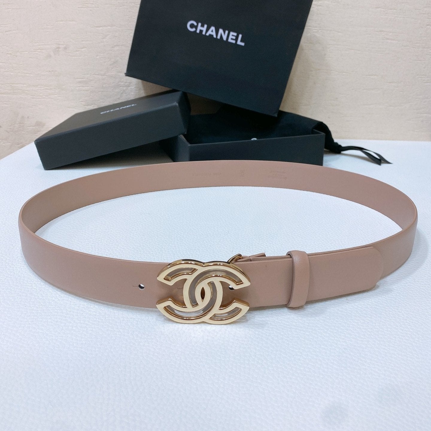 CHANEL BELT 3CM IN ROSY BROWN LAMBSKIN GOLD HARDWARE
