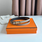 HM GAMMA BUCKLE & REVERSIBLE KHAKI BROWN AND BLACK LEATHER STRAP 13MM GOLD HARDWARE