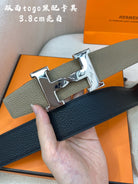 HM H BELT BUCKLE & REVERSIBLE CAMEL BROWN LEATHER STRAP 38MM SILVER HARDWARE