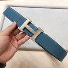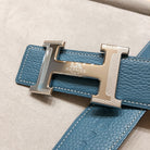 HM H D'ANCRE BELT BUCKLE & REVERSIBLE BLUE GREEN LEATHER STRAP 38 MM SILVER HARDWARE