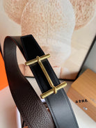 HM H D'ANCRE BELT BUCKLE & REVERSIBLE CHOCOLATE BROWN LEATHER STRAP 38 MM GOLD HARDWARE