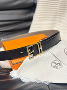HM NATHAN 32MM REVERSIBLE BELT IN BLACK AND TAN LEATHER GOLD BUCKLE