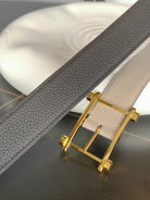 HM REVERSIBLE BLACK AND BLACK AND KHAKI BROWN LEATHER STRAP 32 MM GOLD HARDWARE