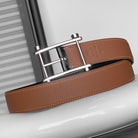 HM REVERSIBLE BLACK AND BRONZE BROWN LEATHER STRAP 32 MM SILVER HARDWARE