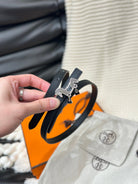 HM ROULIS SILVER BUCKLE & REVERSIBLE BLACK LEATHER STRAP 13MM