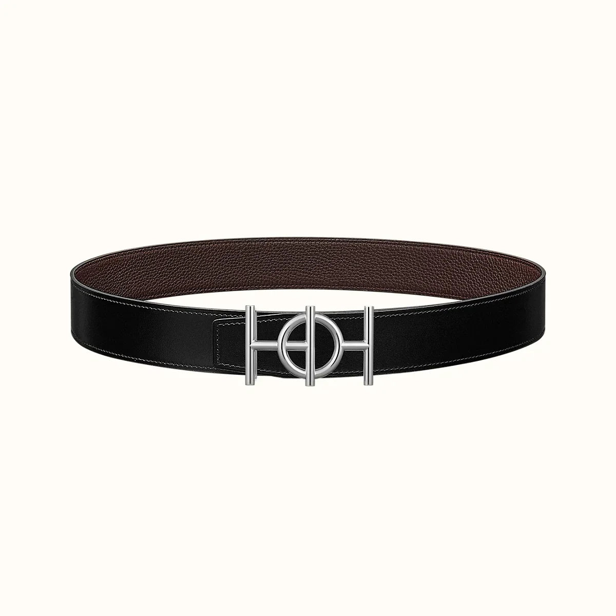 ULYSSE BELT BUCKLE & REVERSIBLE CHOCOLATE BROWN LEATHER STRAP 38MM SILVER HARDWARE