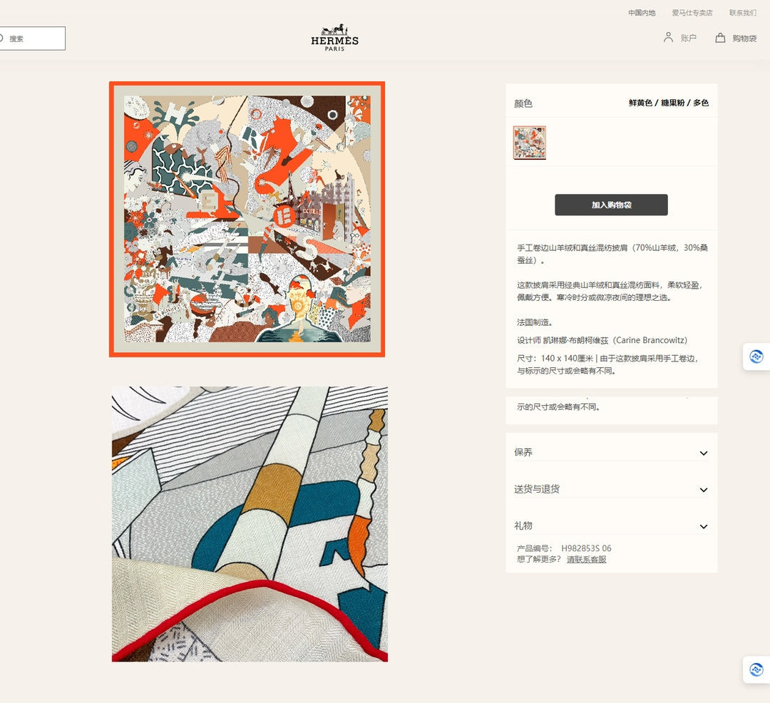 - Material: 70% Cashmere, 30% Silk