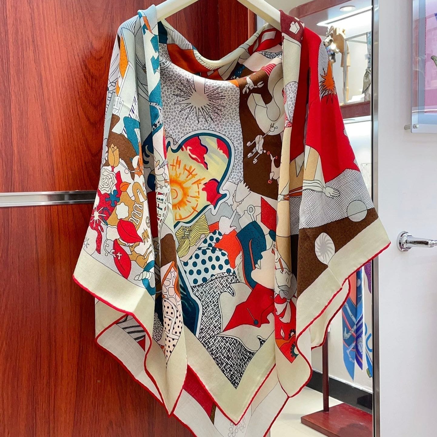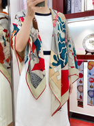 Ca Decoiffe ! Scarf 140 CM In White Colorful Cashmere And Silk 378470