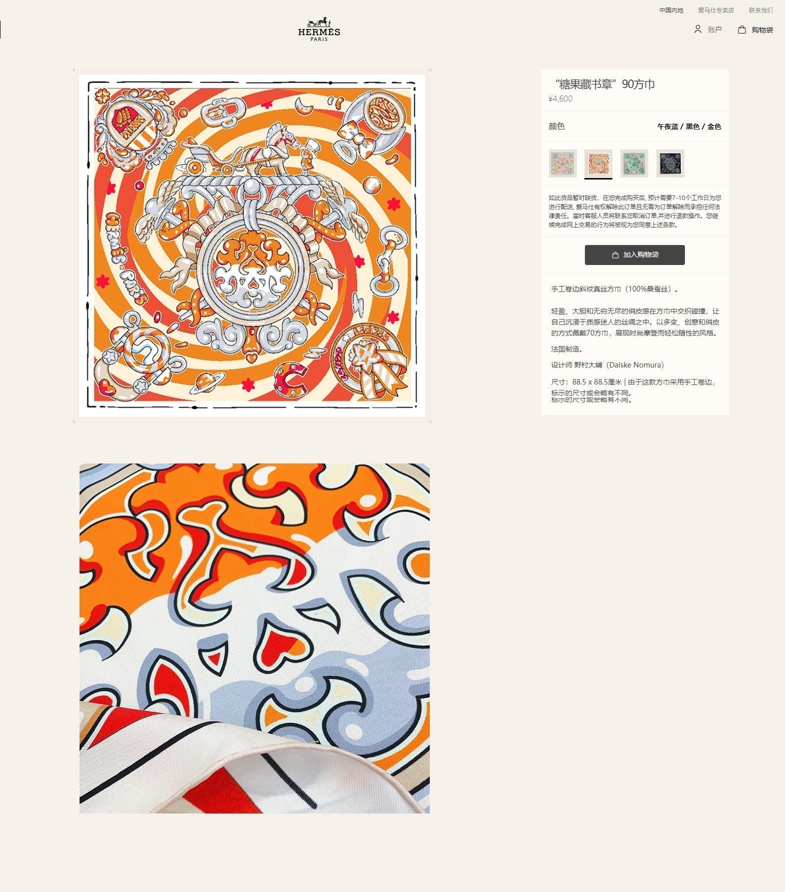 Material: 100% Silk Twill