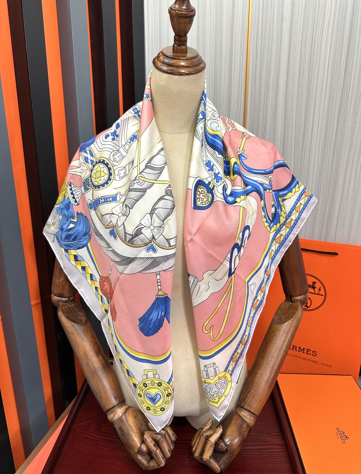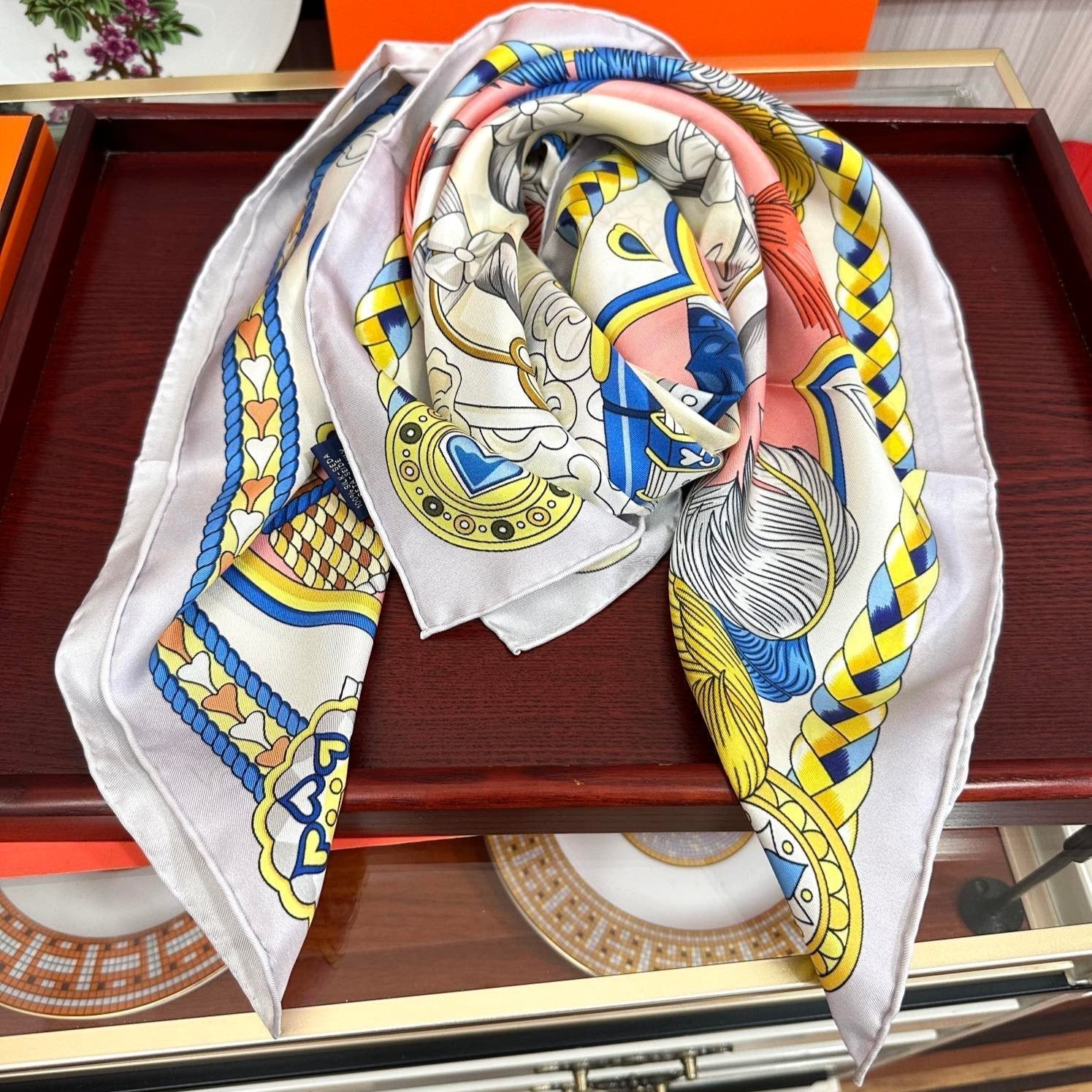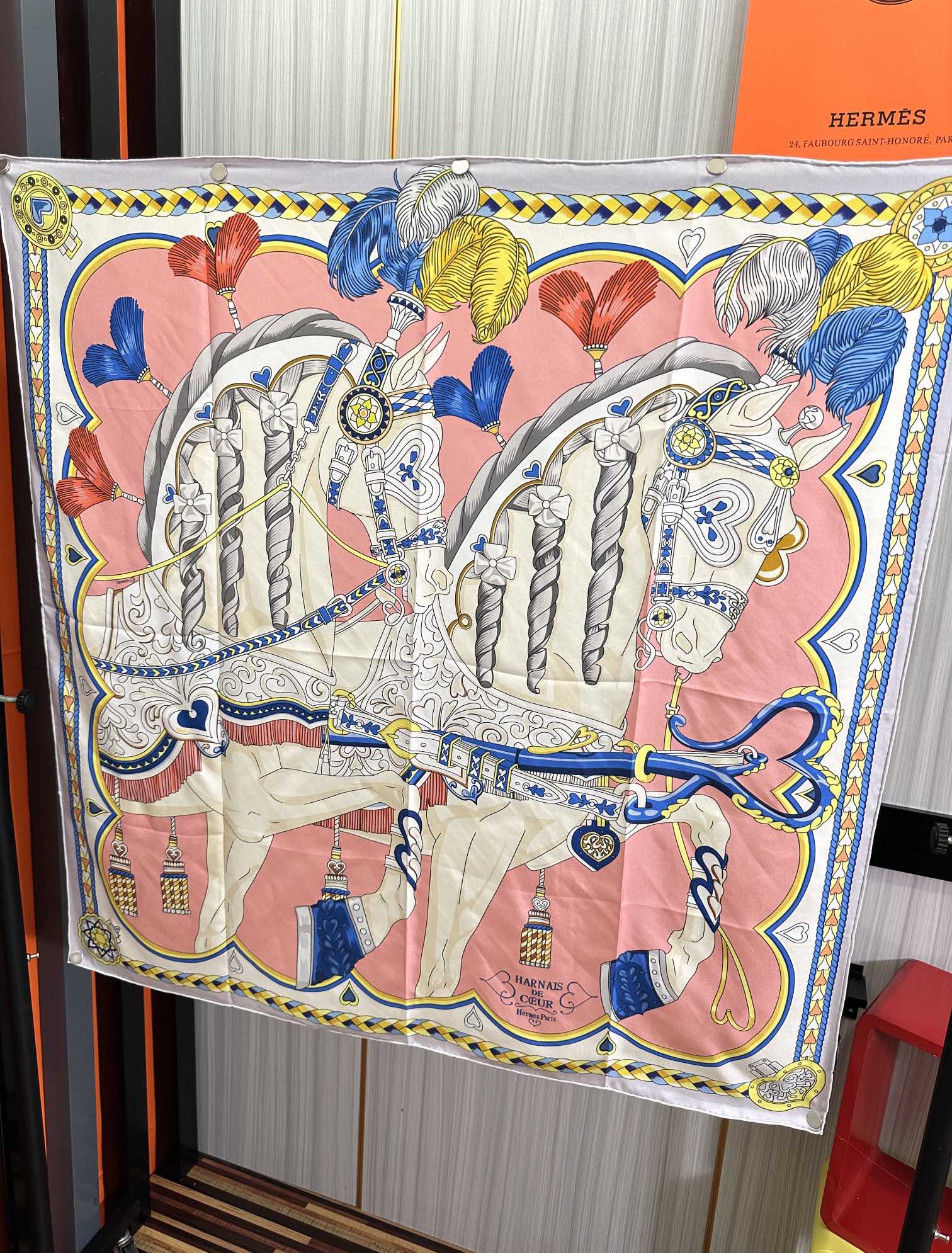 Carré Harnais De Cœur Scarf 90 CM In Pink Colorful Silk 306471