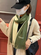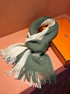 HIGH-END SCARF 180 IN MOSS GREEN MIX BEIGE CASHMERE