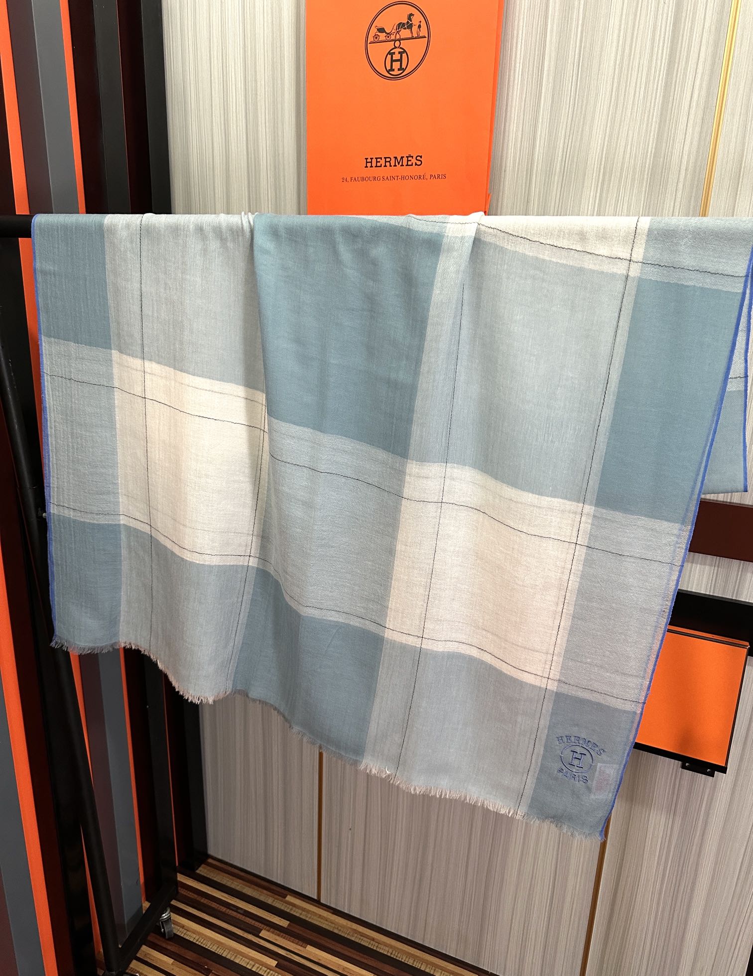Scarf 90 Cm Light Blue Mix White Caro Cashmere