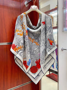 Square Scarf 140CM In Grey White Colorful Cashmere And Silk