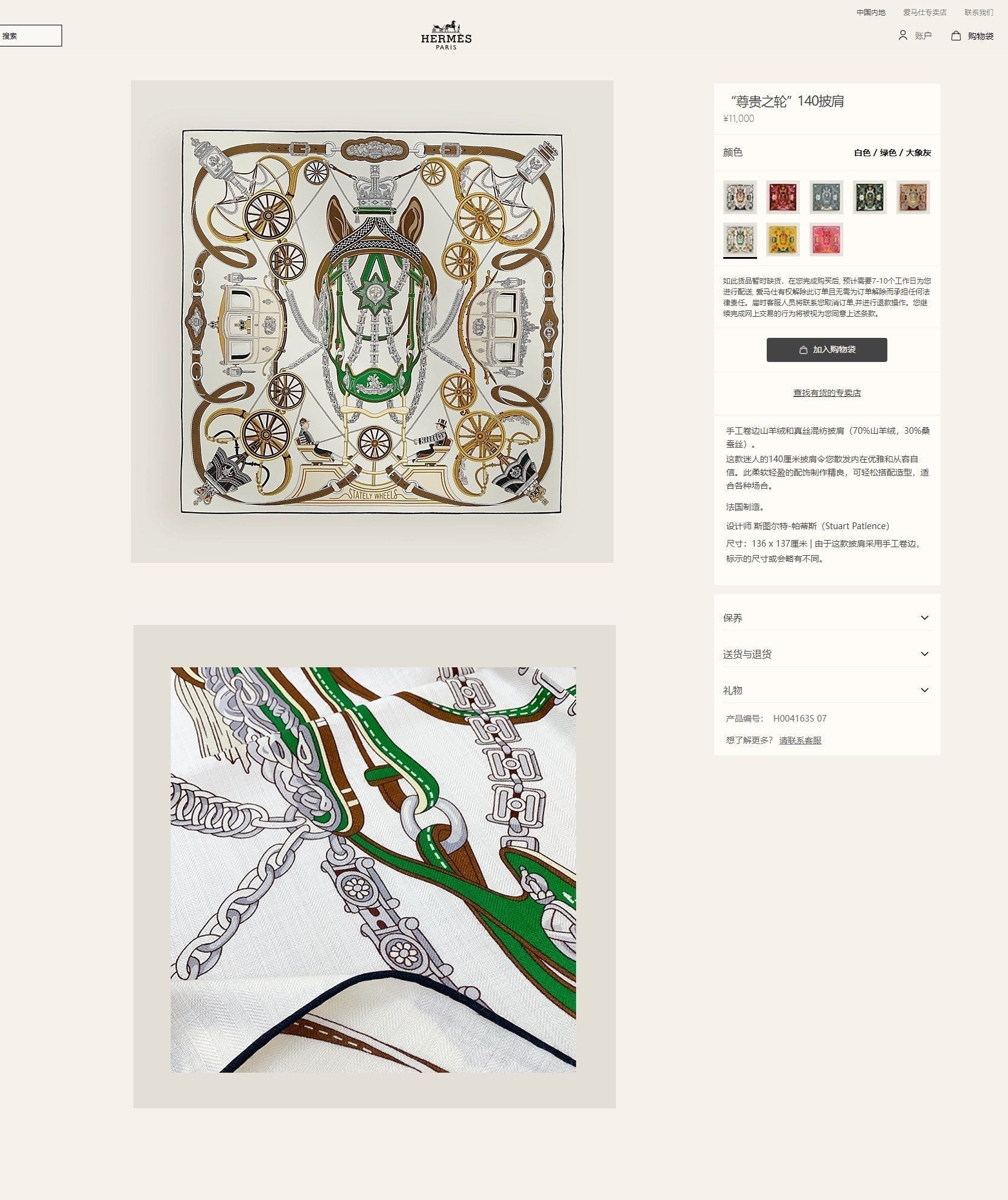 • Material: 70% Cashmere, 30% Silk