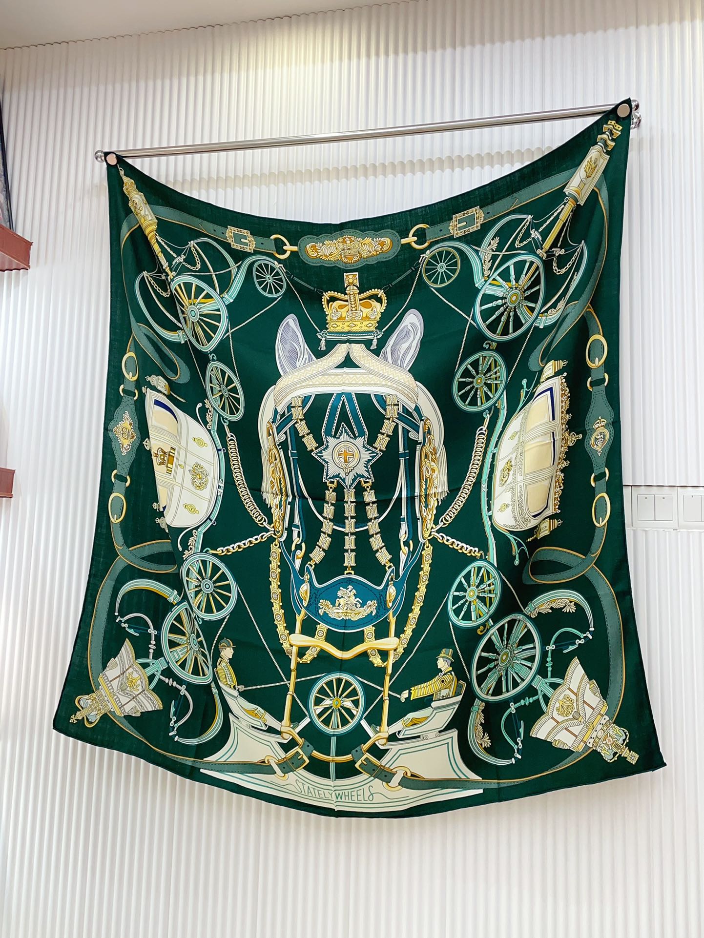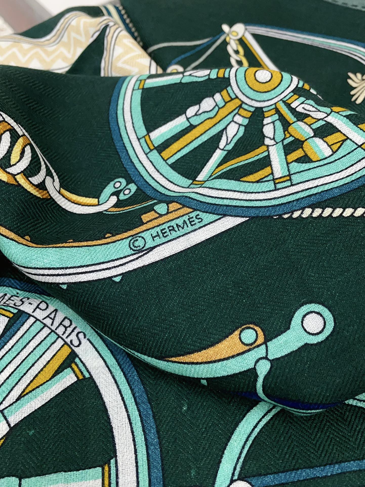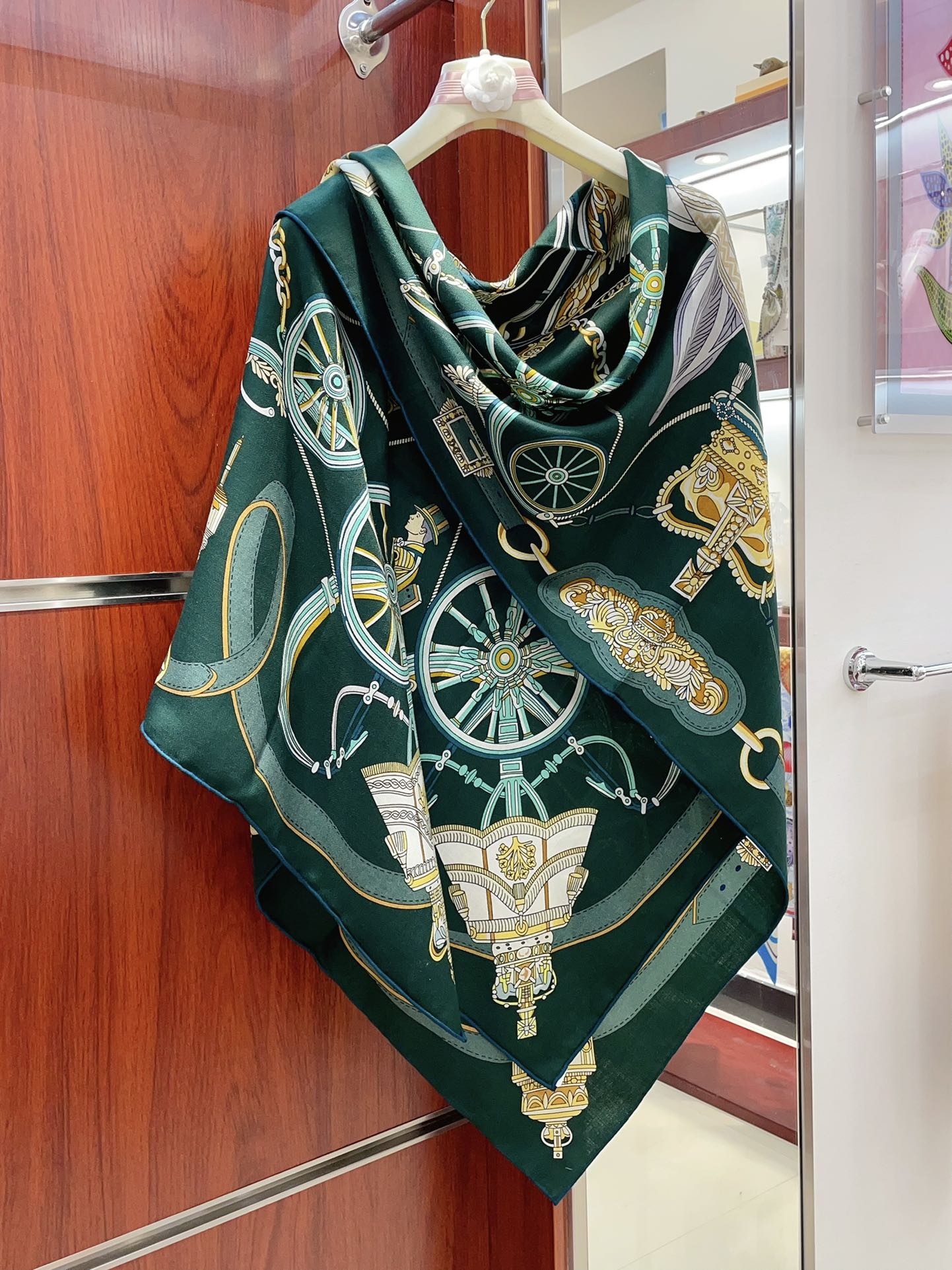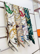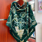 Stately Wheels Scarf 135 CM In Dark Green Colorful Cashmere And Silk 327470