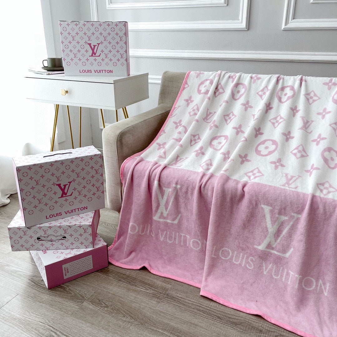 NEO MONOGRAM BLANKET IN WHITE MIX BABY PINK MILK VELVET 273949