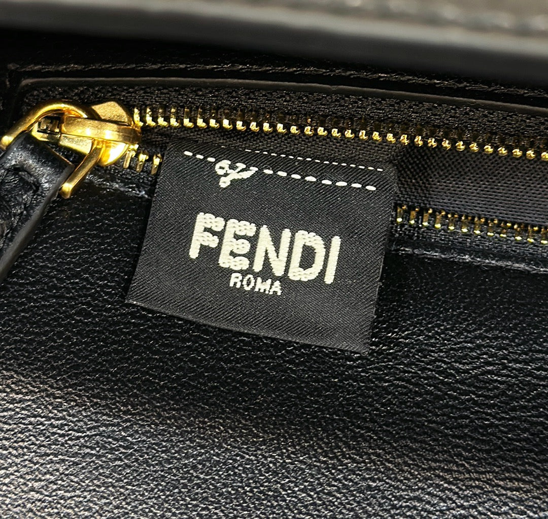 BAGUETTE 27 IN BLACK CROCODILE PATTERN GLOSSY CALFSKIN GOLD HARDWARE