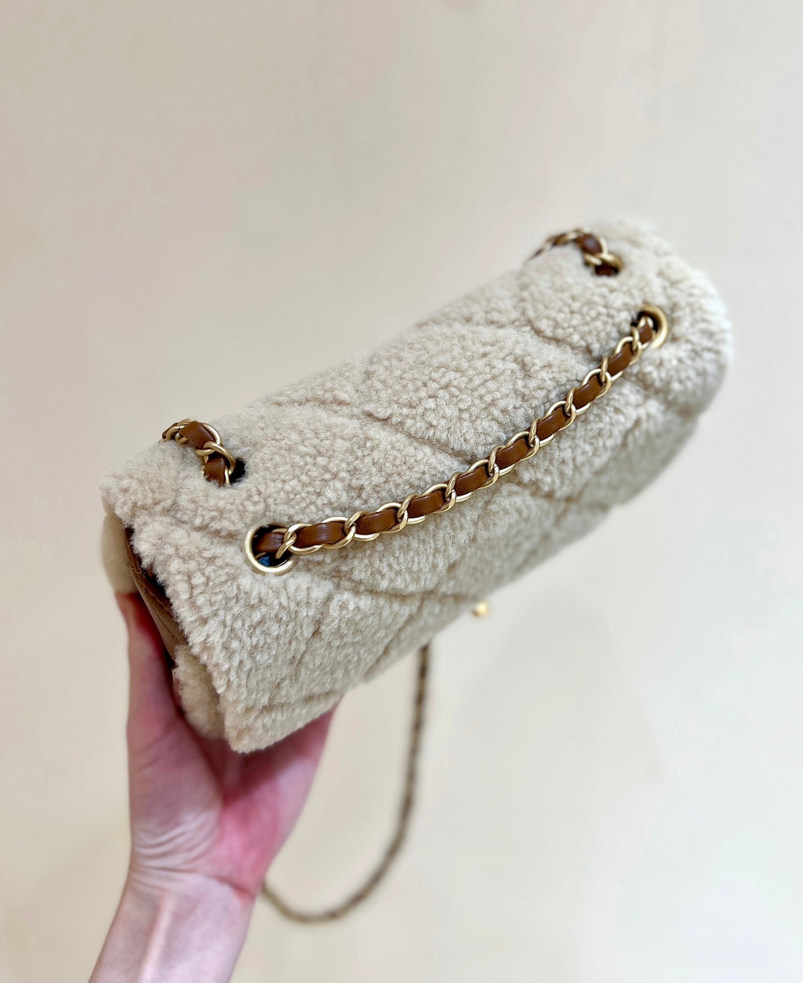 CC 24K Teddy Bear CF 23.5cm Brown Beige Lambskin & Fur Light GHW