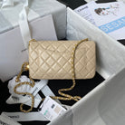 Classic Mini Flap Bag 20cm Beige Lambskin Gold Hardware