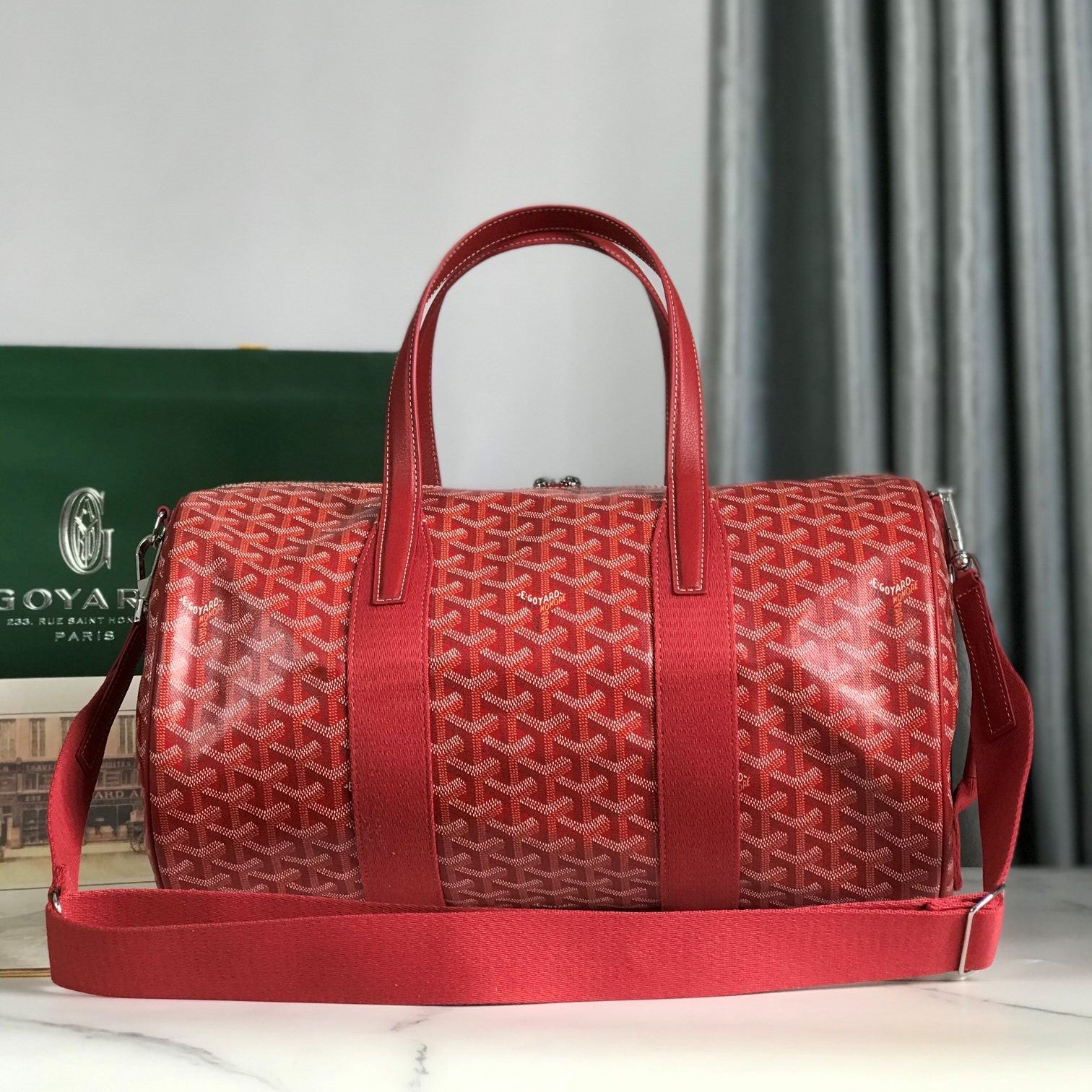 Goyard Barrel 40 Sports Bag Red Canvas & Calfskin