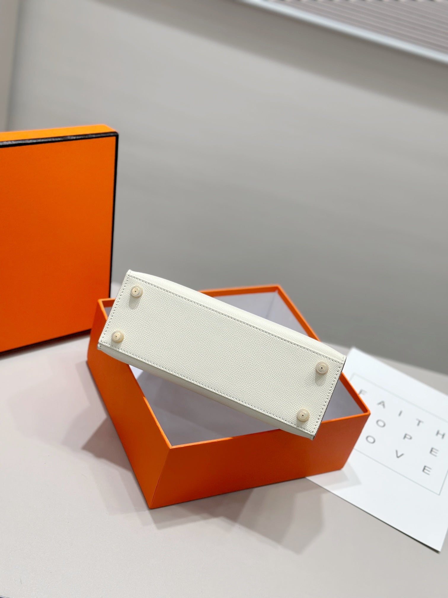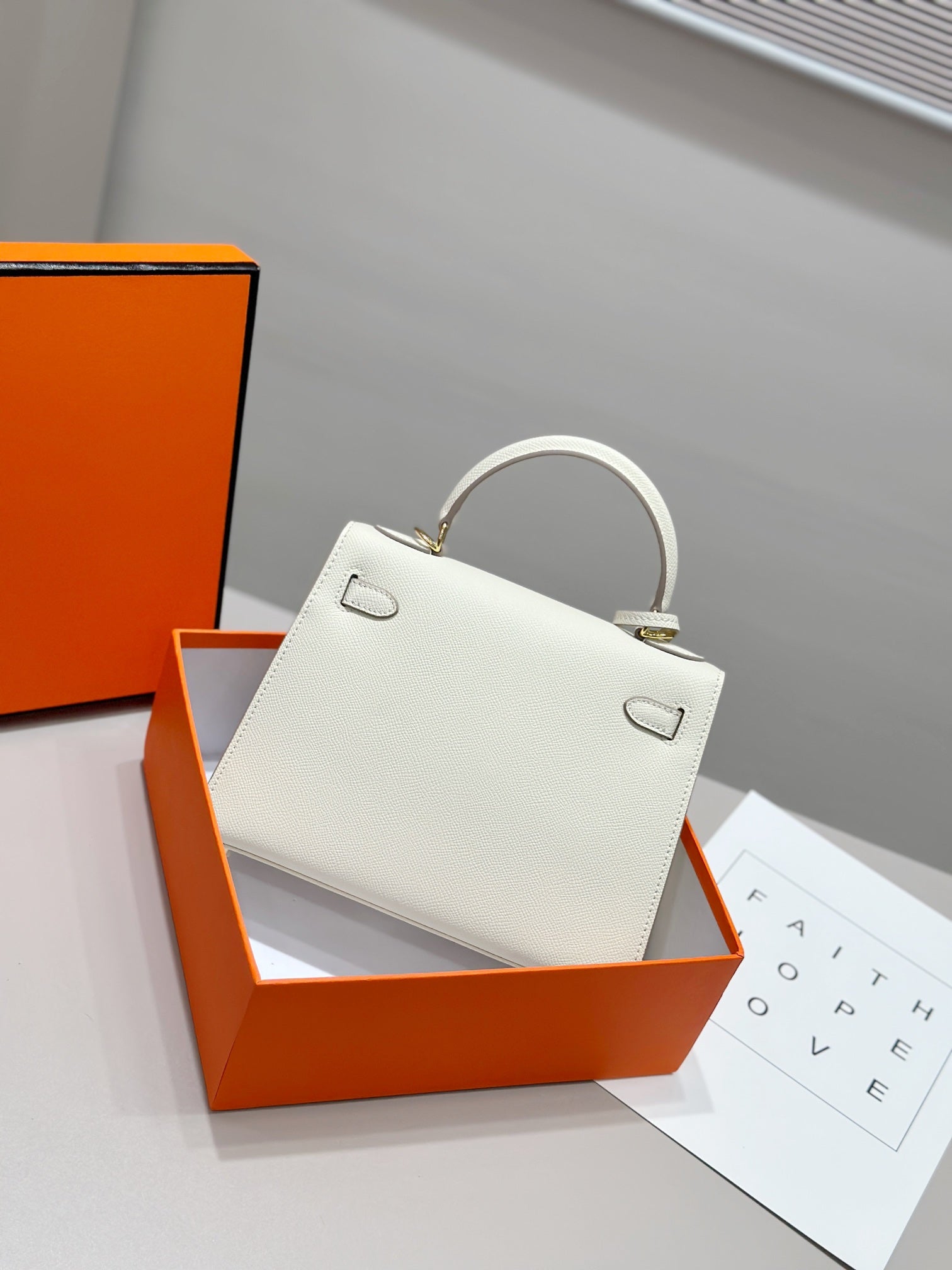 HM Kelly 25cm Cream Epsom Leather Gold Hardware