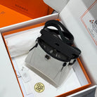 HM Mini Herbag Silver Buckle 20 Ecru White Canvas and Hunter Cowhide 243231