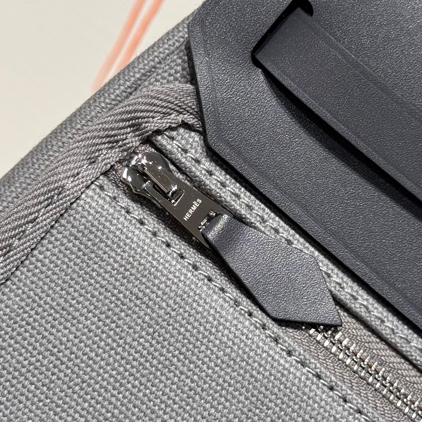 HM Mini Herbag Silver Buckle 20 Gray Canvas and Hunter Cowhide 243265