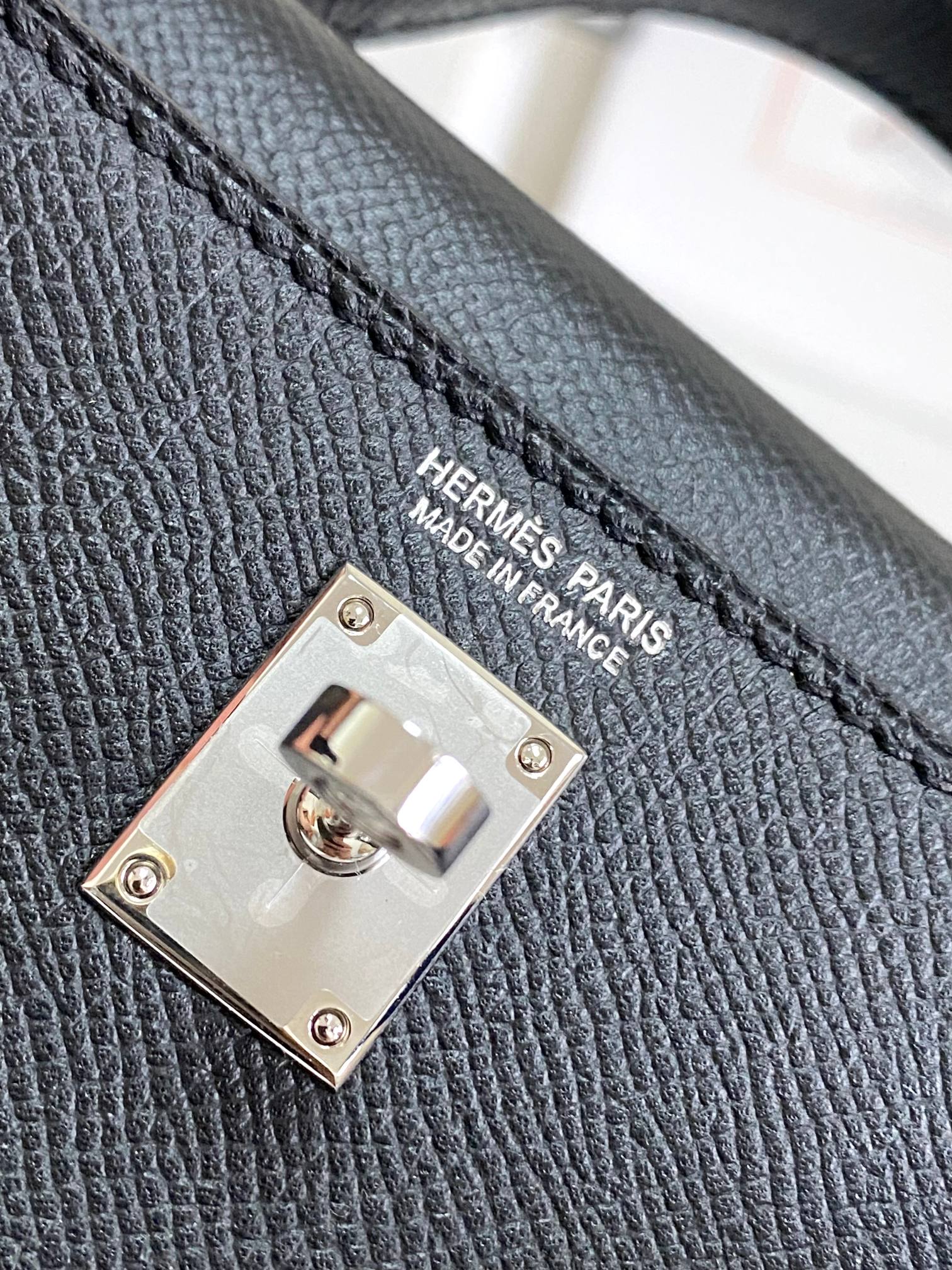 HM Mini Kelly 19cm Black Epsom Silver Hardware