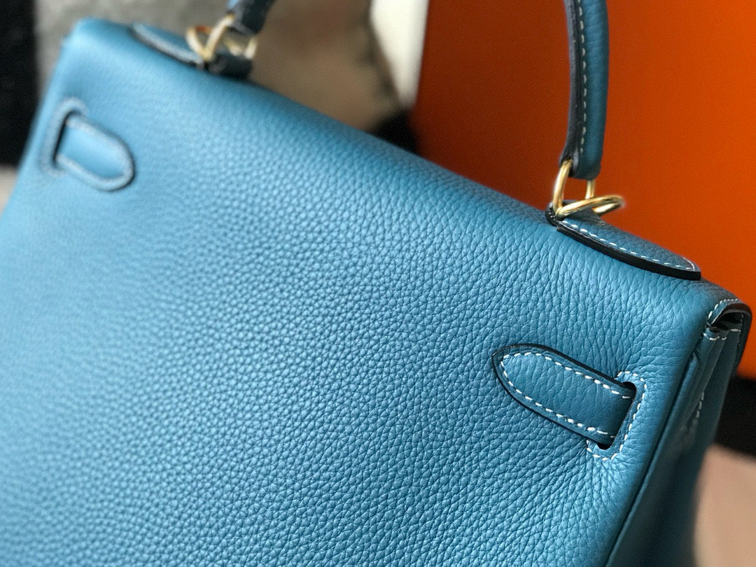 HM Mini Kelly 28cm Blue Jean Togo Leather Gold Hardware