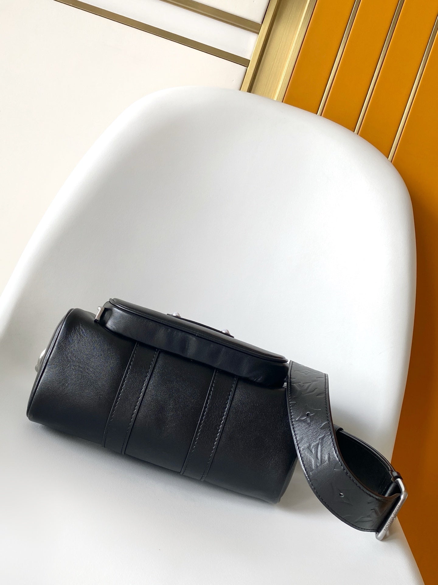 LV M13988 Keepall Bandoulière Cargo 25 Black Caflskin Sliver HW