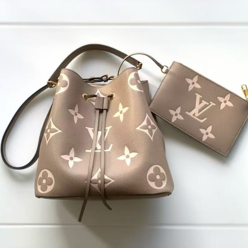 LV NéoNoé Bucket Bag 26cm Beige White Embossed Grained Cowhide