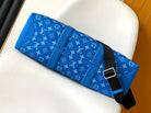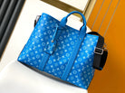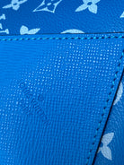 LV The Weekend Tote Bag 43cm Blue Monogram Canvas & Taïga Leather